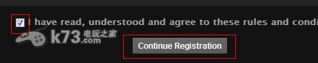 然后移到网页的最下方把前面的框给钩上,点最下方的”Continue Registration继续注册“。