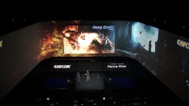 小野义德登台,发表 CAPCOM 新作《deep down》,为中古世纪风格的奇幻作品。影片中身着甲冑骑士在洞窟中与巨龙对抗。