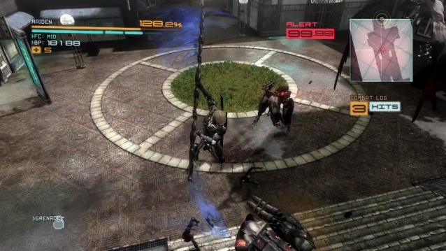大家应该多少都已经知道的,本作已经不再是潜龙谍影系列一贯的偷偷摸摸,隐密潜入式的游戏,而是用雷电手上那把那削铁如泥的高周波刀将面前的敌人给大卸八块!