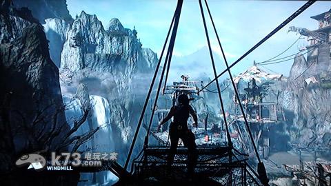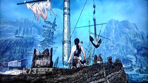 划过几个绳索后乘坐拦车进入一团大雾中,出来后跳过几个平台发生战斗,再攀爬几次后会有连续的缆绳大跳跃,最后滑出瀑布与伙伴们碰面。往前干掉几个杂兵后看见一个锚,打下来后得到重要道具然后回到伙伴那里得到新的弓。