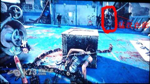进入一个山洞看到一个人在发表演讲,剧情后主角掉入血池中。往前会有很多地方需要火箭搭配瓦斯爆炸开门,之后会有些敌人穿防火服用火箭无效,而且比较耐打小心。