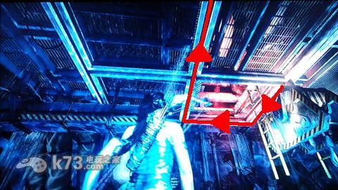 踢掉水管再下楼,按下图方式拉钩子勾掉电锁。进去后发生剧情,离开船舱。