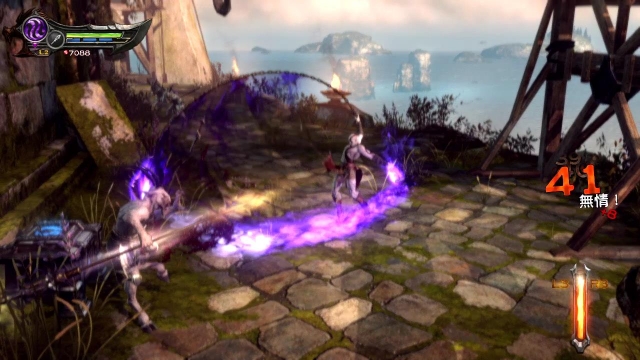 不只如此,这些招式是被整合到全新的「属性」系统裡。克雷多斯的混沌剑将能在火、冰、雷、灵 4 种属性之间切换。随着属性的不同,不仅效果不同,魔法、招式等都会跟着变化。带有属性的攻击若是成功打死敌人,还会依照对应属性来奖励额外的魂魄。火属奖励增加怒气值的金魂,冰属奖励可以用来升级武器、道具、魔法等等的红魂,雷属奖励可以拿来使用魔法的篮魂,灵属则是奖励帮克雷多斯恢復血量的绿魂。