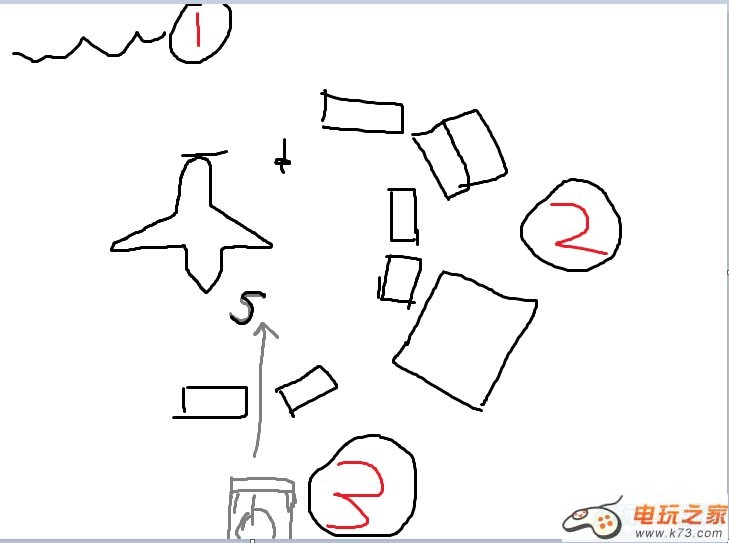 第一波,用路口的重机枪扫。可过,第二波三面来, 先路口机枪打路口1的,然后用重机枪打从2过来的重甲兵,3处会有重机枪的汽车过来,你打到上面的人,然后抢车,把车开到S处,接下来就按C上车操控机枪。