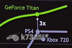 如图表中所示,NVIDIA最新显卡GeForce Tiran拥有超过索尼PS4显卡三倍的性能,而PS4的机能会比Xbox720强上些许。