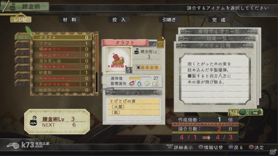 本作继承了《阿亚莎的工作室》里的课题管理系统并在其上进行了加强。