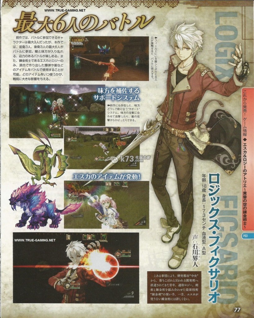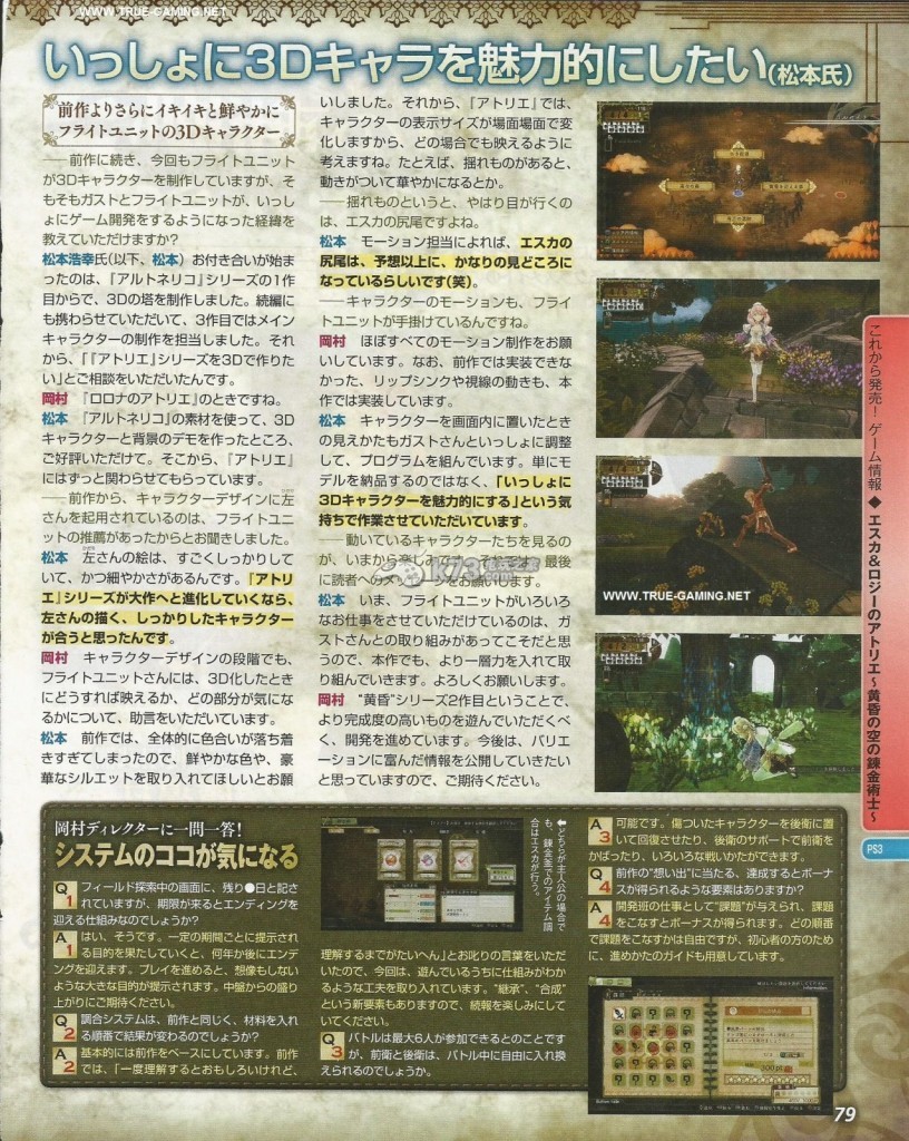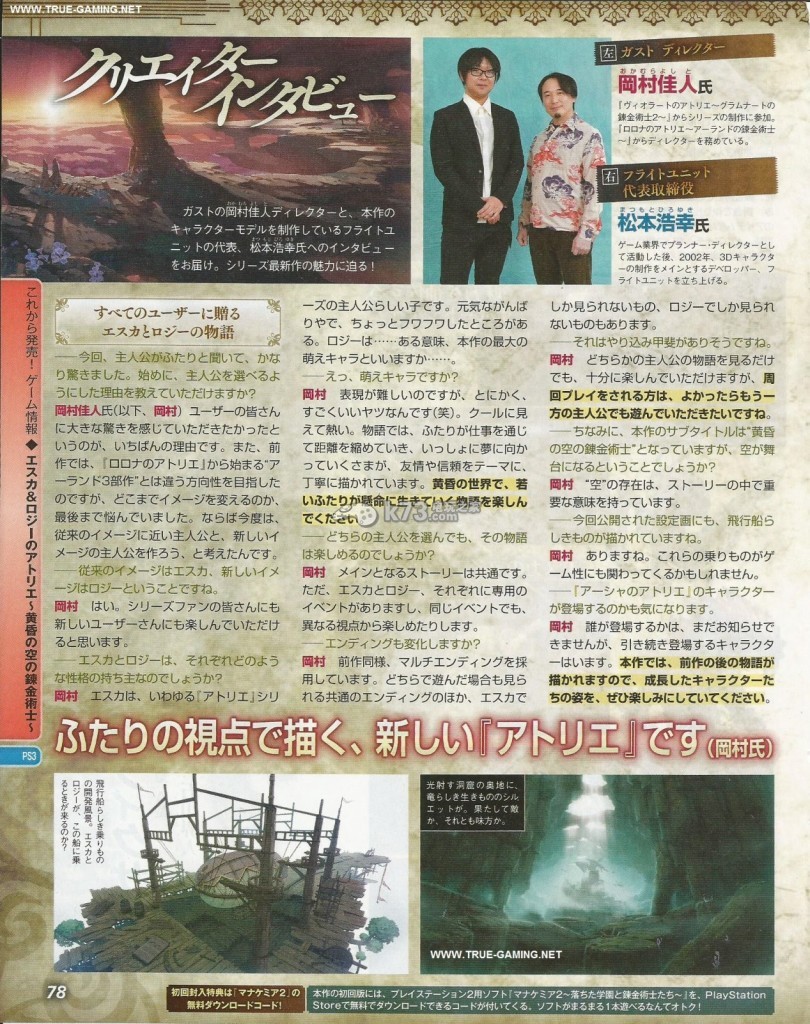 本周fami通杂志图方面公开了大量将于PS3平台发售的工作室系列新作《艾斯卡与洛吉的工作室:黄昏天空的炼金术士》的情报,本作的故事、系统、战斗、合成、双主角等细节情报在杂志图上得到了公开,以下是详情。