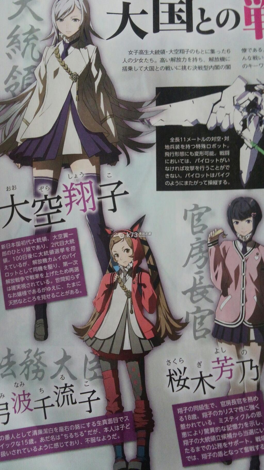5pb.推出的一款新作品《解放少女SIN》即将在PS3平台发售,这是一款ADV类型作品,游戏已经正式发售于2013年12月5日,价格也是比较合理,限定版的CD也会让玩家们一饱耳福。在游戏中,因为其他国家的威胁,使刚独立的日本双陷入了新的解放战争之中。而为了战斗日本也研制了很多的解放机,而能够更好控制这些解放机的十多岁少男少女拥有更多的灵粒子“Mystical”,于是他们就这样在战争中牵引出了新的剧