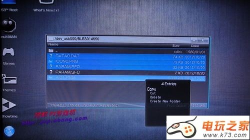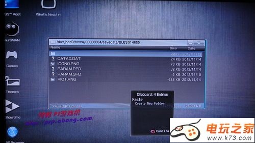 2、存档替换原理:PS3游戏存档分别对应各自的PS3玩家账户,它们保存在存档文件夹的“PARAM.SFO”文件中。比如说《生化危机6》欧版游戏的存档文件夹编号为“BLES014650”,其内部结构为“DATA0.DAT、ICON0.PNG、PARAM.PFD、PARAM.SFO和PIC1.PNG”,通常情况下我们通过U盘复制别人的存档就是复制的整个存档文件夹,其内部结构不能打散复制,所以因为“PARAM.SFO”文件导致账户信息的不同而不能使用其他玩家的存档。而在自制系统环境下,我们可以进入到游戏存档内部按需复制存档基本文件而绕过账户文件,所以就能够使用了!