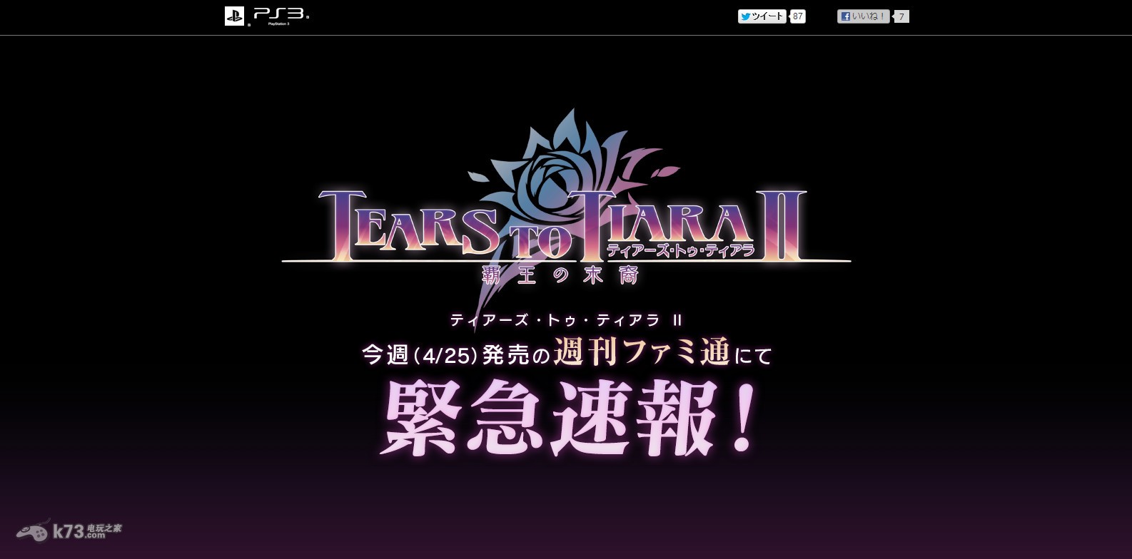 Aquaplus官方于今天公开了其旗下知名游戏系列提亚拉之泪的系列新作《提亚拉之泪2:霸王的末裔 / Tears to tiara 2~霸王的末裔~》的游戏情报,官方确认了本作将会登陆PS3平台,同时放出了游戏的官网页面。