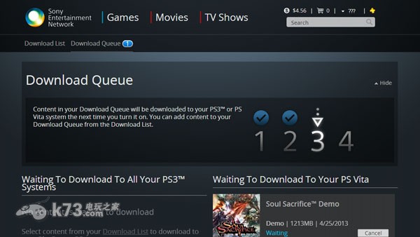 玩家可以将PSN网页商店的下载队列传输到PS3或者PSV主机上进行下载,当你的开启PS3或者PSV时就可以自动下载了。