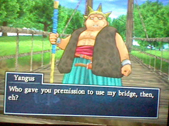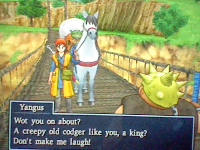 有一天 ,主角和国王牵着马车经过一个狭窄的吊桥,突然,从天而降一只彪形大汉