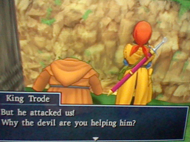 →返回マイエラ修道院中与守卫对话后进入地下室发生事件。返回一楼从另一处大门出去后看到两个守卫与其对话后再返回一楼遇到库库鲁发生事件。