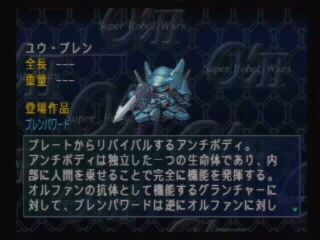 一共6台BP机体都差不太多,就一并说了。机组能力是典型的真实系回避型----高运动性,S的体积,机师有抗体反应(加命中,回避,武器威力,射程)。有广域防壁,作用是所有伤害-700,极其实用!特别是对于超级系而言。在以超级系为LEADER的编队里面,加入一台BP,杂兵战就基本无敌了。在以真实系为LEADER的编队里面则可以在很大程度上避免被敌BOSS秒杀。 武器方面作为僚机的话非常好----PLA武器初始射程1-7,EN消耗10,威力也不错。机师的抗体反应达到LV7的时候射程+1,LV9的时候+2,每升一级抗体反应,武器威力+50。 作为LEADER机的话差一些,普通移动后可使用的武器是最低威力的格斗系,射程1;110气力可使用1-3(抗体反应9的时候是1-5)的格斗型武器,消耗EN30。普通ALL系武器6台机体差异较大,比玛的机体根本就没有,勇的早期型只有1发残弹,后期型是2发,其它4机是4发,威力和射程都是中等水平。 勇和比玛的合体技超强,ALL系,两机各自消耗EN40,射程1-8(抗体反应9的时候是1-10),威力在两台机体都满改武器,两人抗体反应都是LV9的时候达到6650!配合勇的”魂“,虽然只有S的体积,但是破坏力仍然是非常高的!无论是杂兵战,还是BOSS战都能够胜任。 机体改造的时候四项能力都要改,强化芯片以装甲系为主,特别是作为LEADER的勇的机体。特技方面首推节能,僚机机师们则以SP系为主。这6个人的精神好啊----1个有”魂“,3个有”爱“,两个有”加速“,还有”补给“......不用实在太可惜了。 最后三部机体为可以在最终话登场的bp系BOSS三人组,机体能力很高,装甲和HP都高到正面接最终BOSS的ALL系攻击不会死的地步,用来吸引火力不错。攻击力在最终BOSS面前显得微不足道,虽然有”魂“,有”爱“,也只能打3,4000左右。不过说来奇怪,每次我打最终BOSS的时候,在敌方行动的回合,BOSS总是打这三人组,难道是看他们好欺负不成? |
