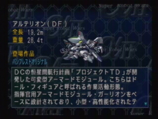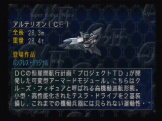 阿尔特利昂(R女初期机体): 机体能力还是不错的,可以飞(不愧是AM系的),可以变形,飞机形态的移动力高。武器方面以残弹型的射击武器为主,在MS形态有ALL武器,而且是移动以后可以使用的,虽然射程很奇怪3-4,但是还是比较有用的(见注释)。机体的MS形态有剑,但是R女也没有剑切能力,可以考虑学习。最强武器在MS形态,但是就机体而言较实用的是MA形态,所以需要根据情况变形。考虑到R女初期的能力实在是差得可以(只有反击这种特技还算不错),所以要把最好的运动性和装甲系的强化芯片给装上。 注:ALL武器的动画里可以看到眼镜MM的特写,不过没有OG里面的眼镜MM漂亮就是了。 觉醒后的初期机体: 31话后开始使用,机体能力追加分身,最强武器GRaMXs追加到MA形态上,而且是移动后可以使用的,射程是中远,3发残弹。配合觉醒的R女----各项能力+10,小队长能力变成移动+1,回避+10%,一下子就变得很好用了。 |