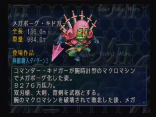 只能在“华丽的二流”这一话使用2个回合的机体,HP有32000,战斗动画还可以看看,其它的么,正如万丈大哥所言:二流就是二流。 |