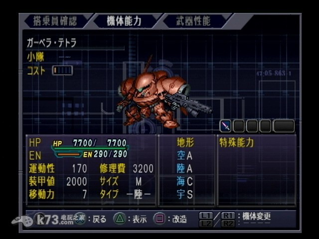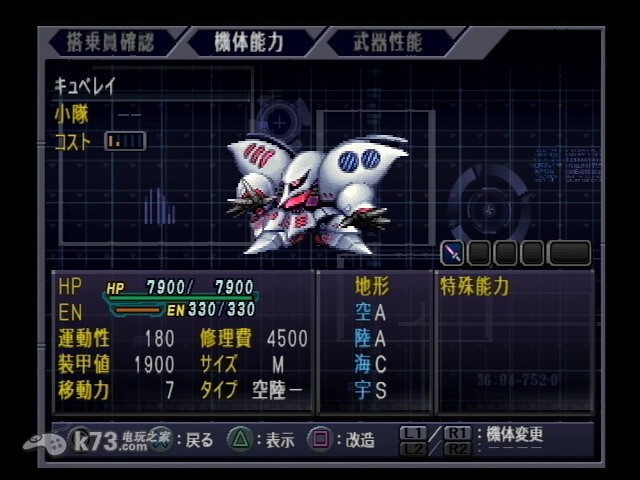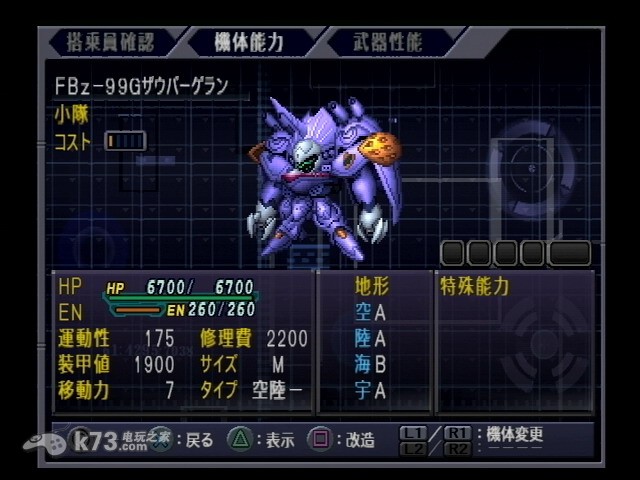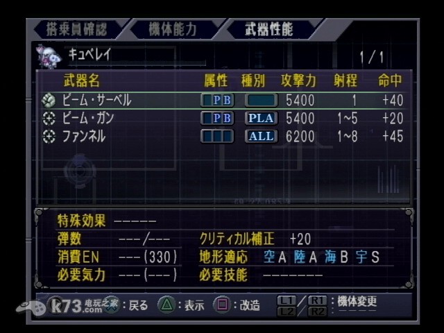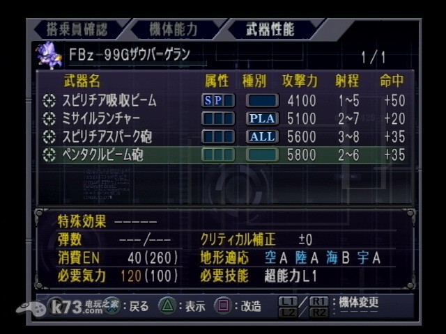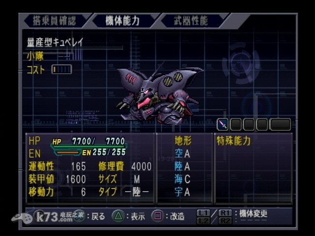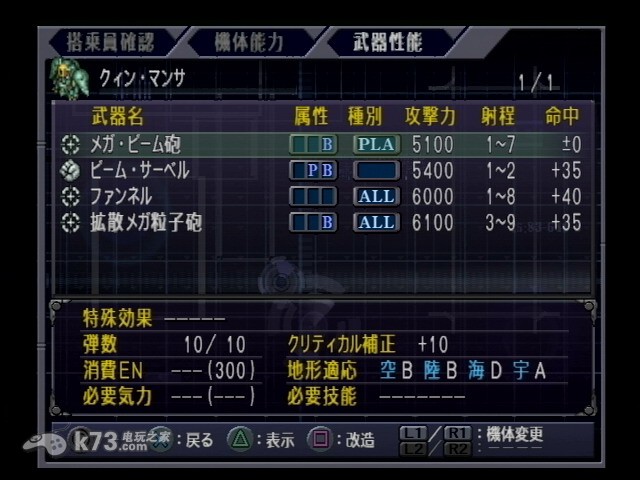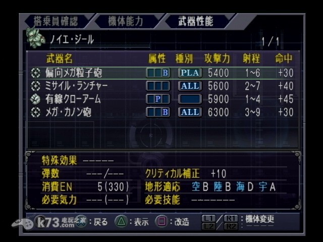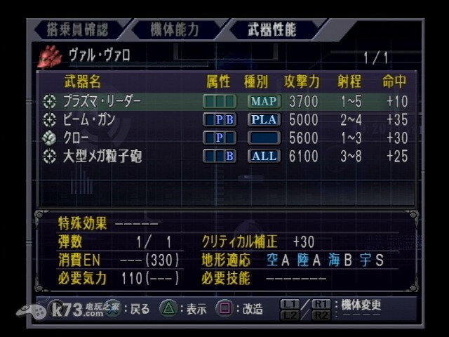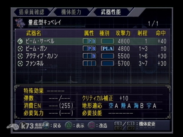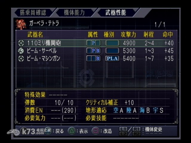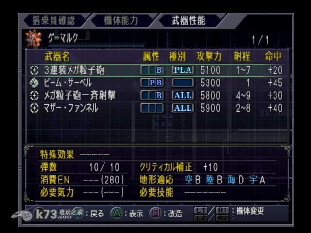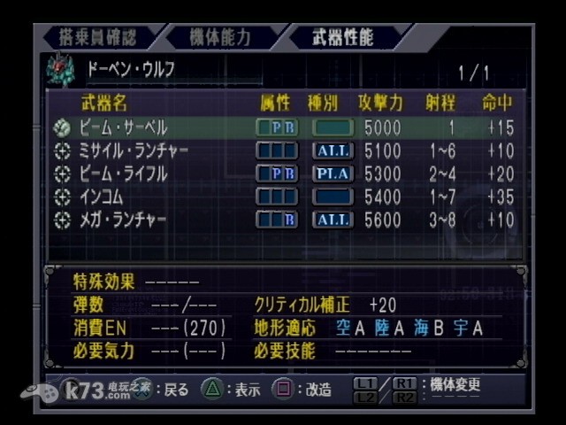 注1:上述要素中的机体每类只能入手一次,未满足条件则入手メガライダー、リ·ガズィ。 注2:隐藏要素中需要发生剧情的我方人物必须为小队长,如要击坠敌人此人必须被该小队长亲自击坠(不能被援护攻击、小队攻击中的队员或者MAP武器击坠,但小队长可用合体攻击)。 10段改造。 |