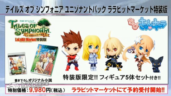 Lalabit Market 限定版售价为 9,980日元,包括五个“Chibi Kyun Chara”的人物Lloyd Irving, Colette Brunel, Emil Castagnier, Marta Lualdi, 和Tenebrae,一本原创小说“Kibou wo Tsugu Mono,” 和一个Ufotable绘制的特别包。