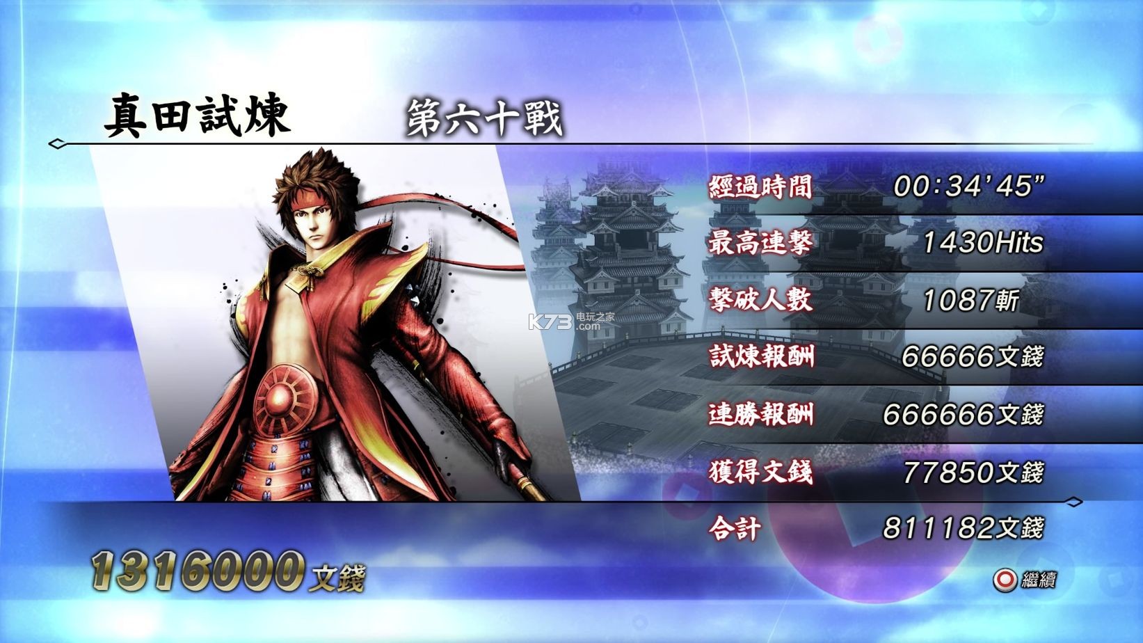 →在真田幸村之生涯的序章击破超过100名敌人并通关。