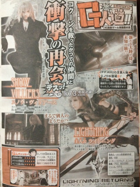 根据本周Vjump杂志图的最新消息,SE即将发售的PS3游戏《最终幻想13雷霆回归》中除了一些全新的角色以外,13系列作品中的经典角色Snow Villiers雪叔将会回归本作。