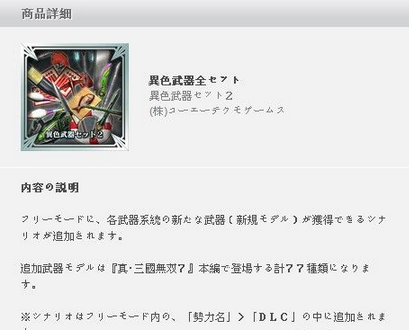 测试结果:本人4.30R系统,运行大神官方免授权第八弹DLC完全没问题,但是刚刚运行大神的“先於官方《真三國無雙7》中文版異色武器包2”,DLC显示2个战场,一个是中文的,一个是乱码,两个我都试运行了,游戏关卡开始读取到进度条慢提示开始游戏时,死机,画面卡住。只有强x关机。不知道什么情况。原因可能为中文版的补丁还没有出来。