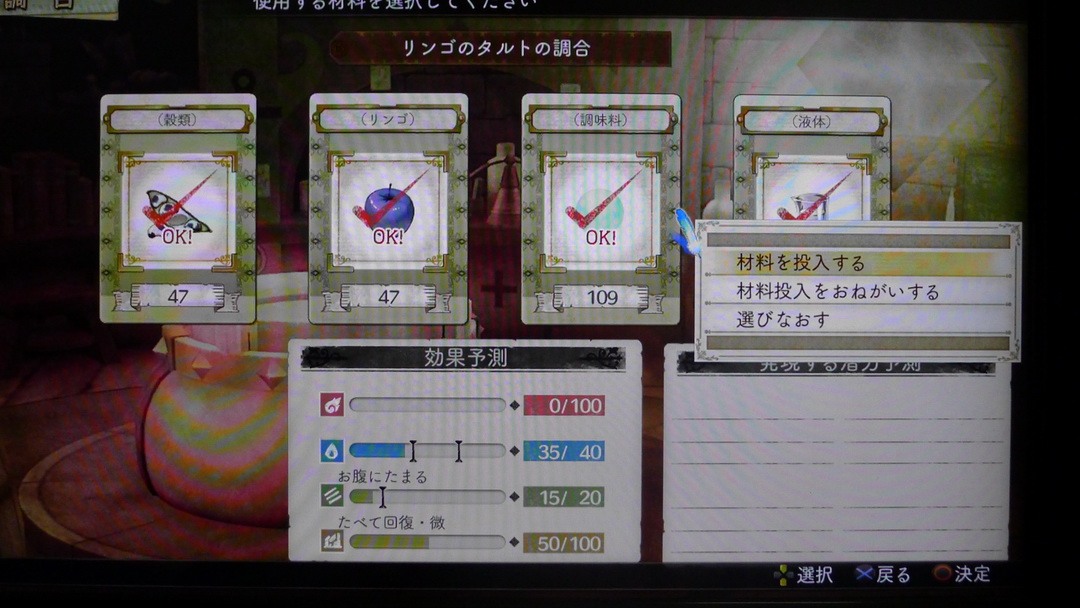 2 选择材料(这代还会告诉你有些材料可以使用调和的方式做出):