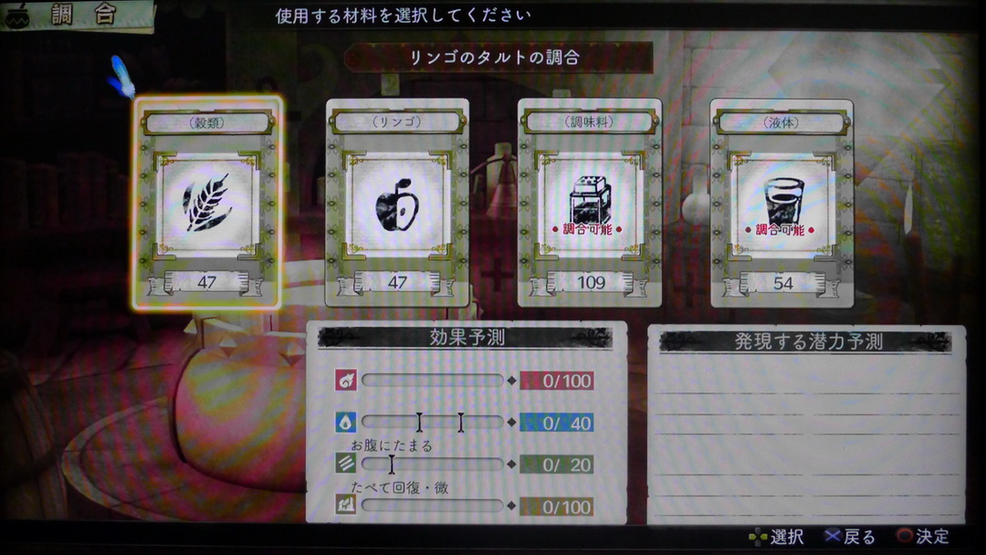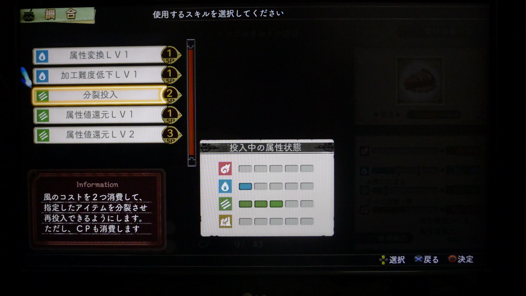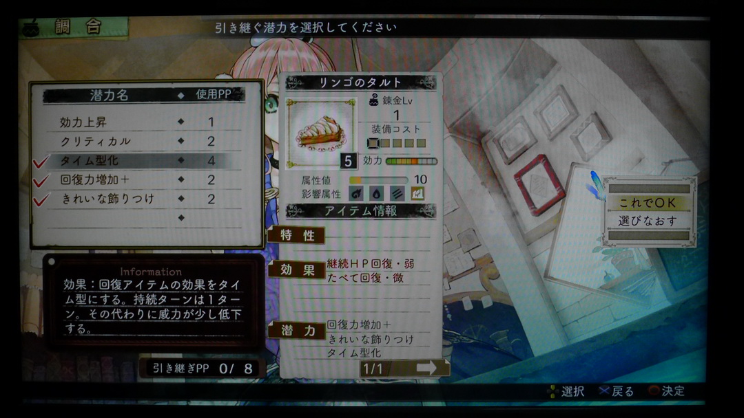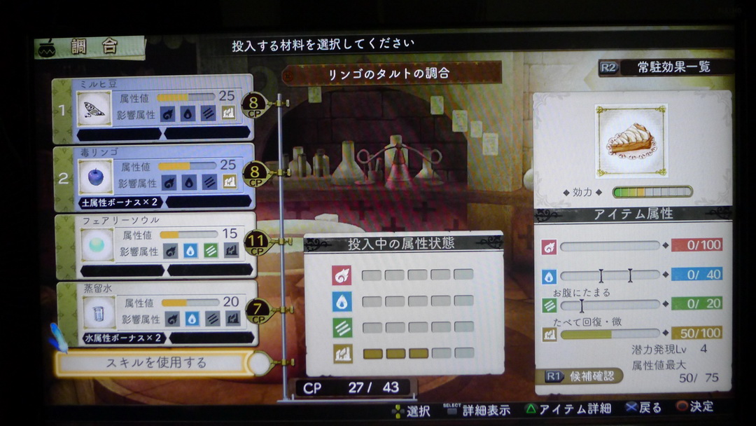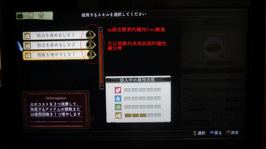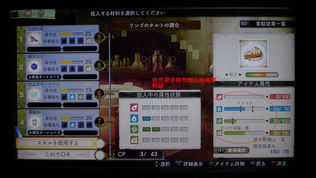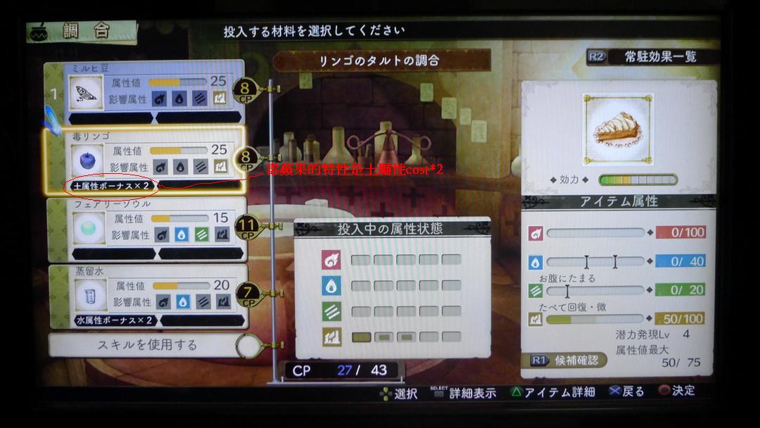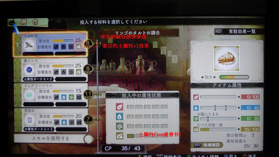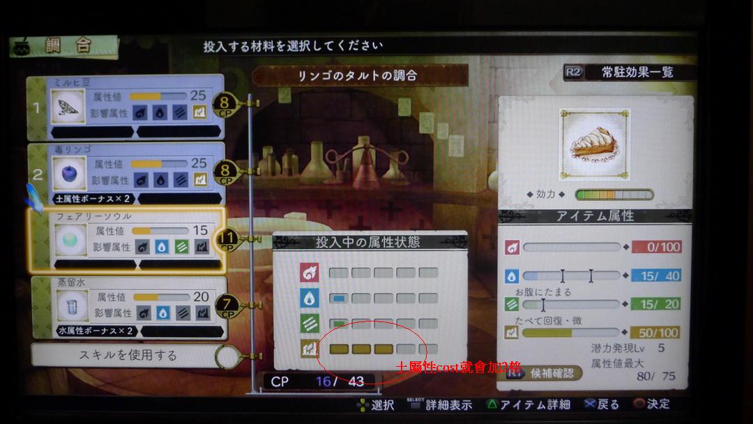 关于调和攻击和回复这两个,好像一次只能作一个,不能选定要调和几个,这代的数量目前只能靠土属性的Cost增加,所以固定只能做一个,不过装备在探险装备区后,总务会帮你补充,这是目前量产的方法。