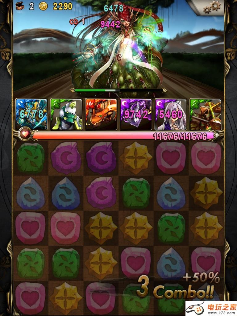 高级以上的关卡出现的火巫女玛莉曼、修道者凯莉丝、碧石大地精带有连击状态,水、火属和木属的小魔女每回合都能进行攻击,搭配连击会给玩家相当大量的伤害,进入关卡后锁定小魔女一只一只尽快打掉是比较保险的做法。