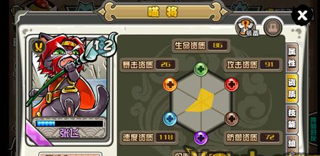 资质为喵将的天生偏向,如果主公没有“因材施教”随意乱加,不但不能充分发挥喵将自身的特长,更有可能导致喵将无用武之地。