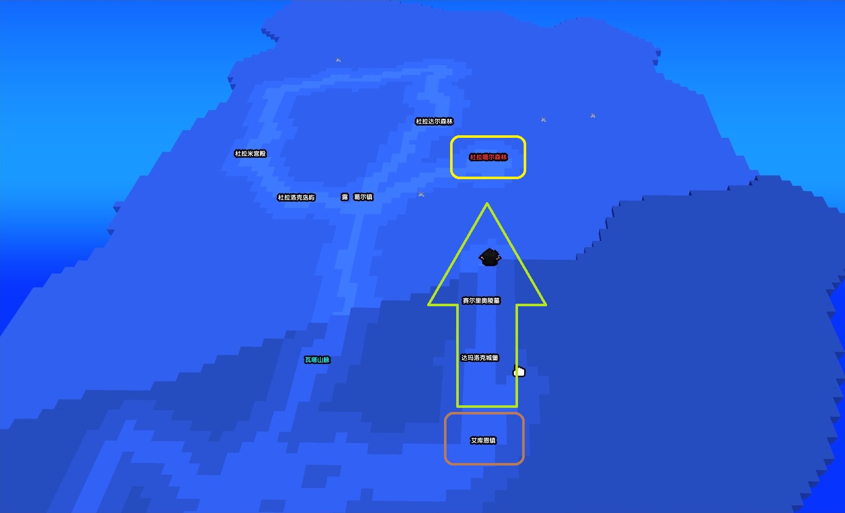 首先: 一进入该地图,离你最近有一个村,叫艾库恩镇,进村后先準备一点物资,因為该练功岛离周围城镇有一点远...还有要準备一条船...这样会比较方便!!準备好后,往该村的"正北边"(N) 直奔我们的目的地 "杜拉葛尔森林"。