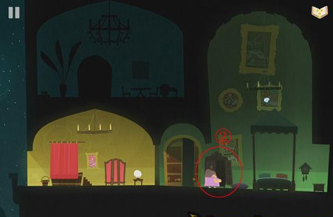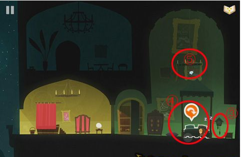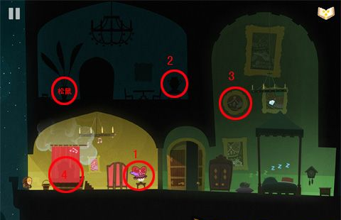⑤胖妇人被时钟吵醒后我们就利用胖妇人的重量跳上上面的吊灯并且将钻石拿到手。