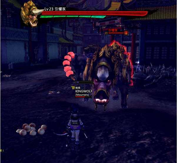 好不容易救出玉蝶并清除满场怪物后,最终BOSS 立刻就降临在场上,不过玩家还不能和他打,他会招出两只引惧豕在场上横冲直撞,玩家最好引走一只、集火一只,才不会造成人员死伤。