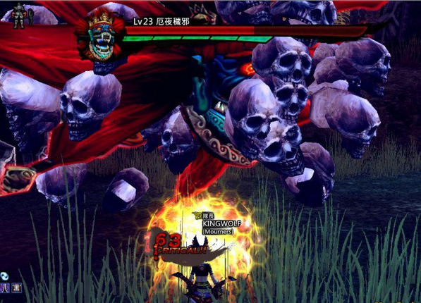 看着地图一路走到最底就会遭遇最终BOSS ,这只BOSS 相当难缠,不是一般打法可以应付的,首先要注意心灵控制这个技能,当发现有队友中这个DEBUFF 时,要立刻前往救援,将束缚的居民给打掉,接着看到BOSS 身边有骷髅围绕时,所有人尤其是近战职业都必须马上远离BOSS 身边,一但被BOSS 碰到可是会承受大量伤害而被秒杀的,必须以远程攻击或是等到骷髅消失为止才行。