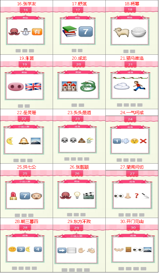 1-30关的全部答案给大家整理在这呢!有不明白的就过来看看吧。只是伤不起的是第一题居然是我们从小撸到大的苍老师,看来苍老师真是无所不在啊。
