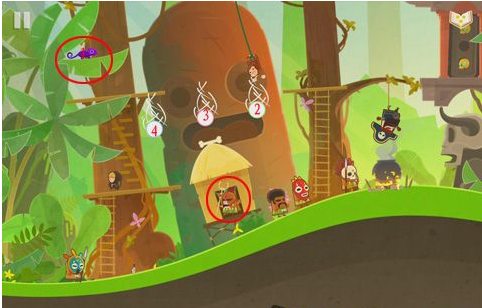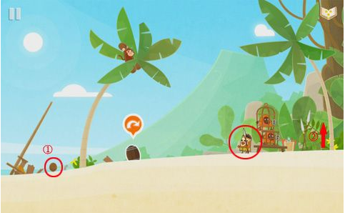 此关通关的剧情应该是这样发展的,首先利用椰子将巡逻的给砸晕,然后拿到刀以及利用猴子到达指定位置,并利用拿到的刀切断绳子,最后就把猴子给的金头放到指定位置即可,这关相对还是比较简单的,不明白的可以看看图文视频攻略。