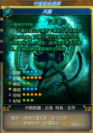 第二名:天龙。我之所以把天龙排在第二位是因為天龙实在是技术含量超高的职业。我们对天龙的了解,印象中应该只有那个冲在最前,吸引仇恨,奶一口就屹立不倒的那种形象吧。但是基本上在战场跟野外PK大家应该吃过天龙不少的亏吧,尤其是他的技能,各种控制你到爽,打架释放的每一个技能只要把握住时机,往往胜利的都是天龙。但是因為不是每一个玩家的操作都能达标,所以天龙只能屈居第二了,不是每个天龙都变态,但是变态的人里绝对有天龙。就像我们军团的小库库,超技术型天龙,花少钱打嬴台战,在我感觉不花钱玩天龙比较好,只靠技能取胜,当然花钱也很恐怖的。