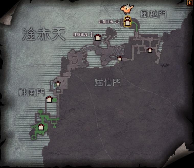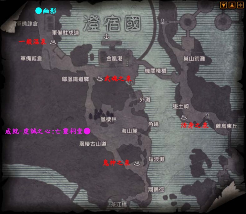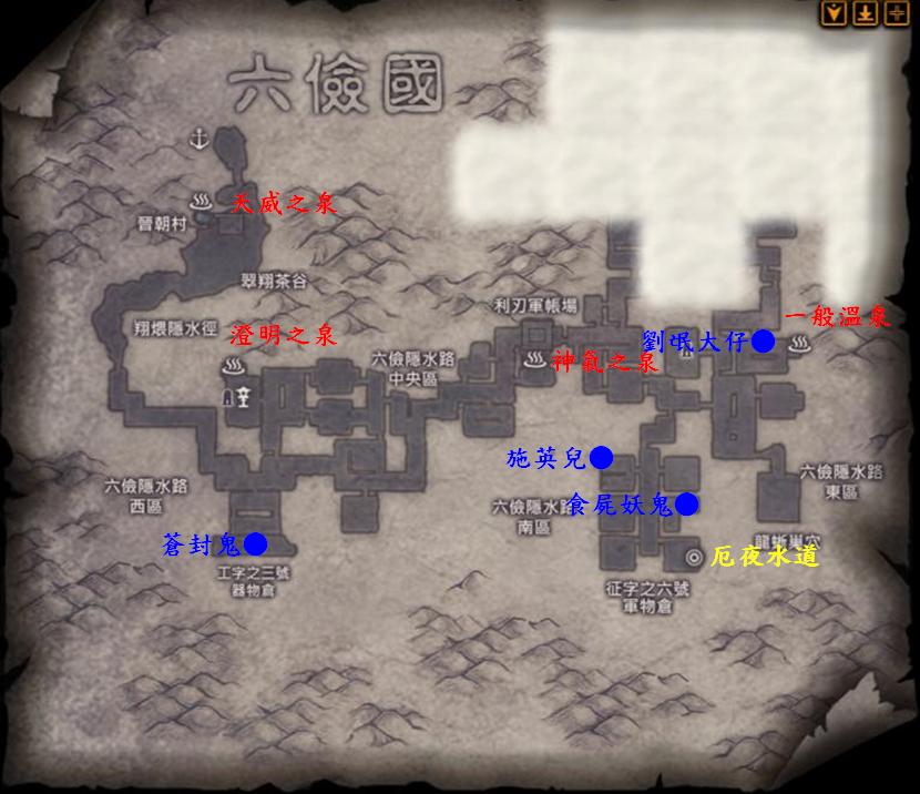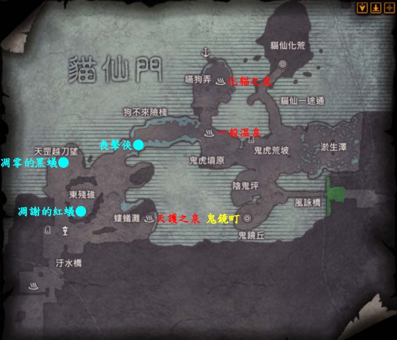 | 鬼镜丘 | 珍奇坊(皇缨): [1590, 1912] | 黑虎(LV18~20) | 鬼镜町 |
