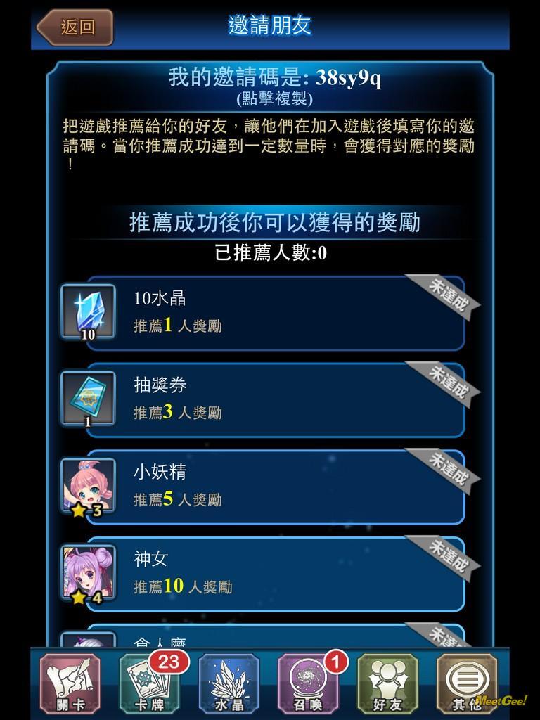 ▲ 透过自己的邀请码来新增好友,有机会让我们拿到额外的水晶奖励哦!