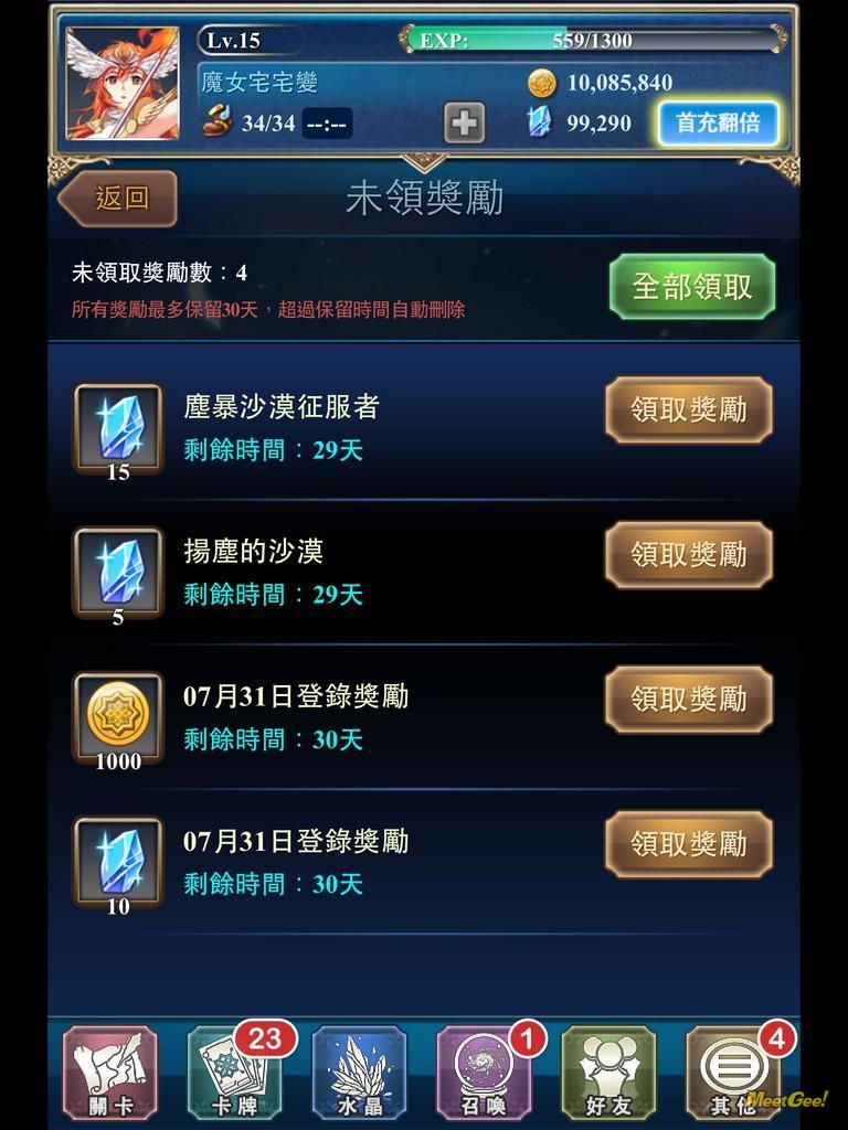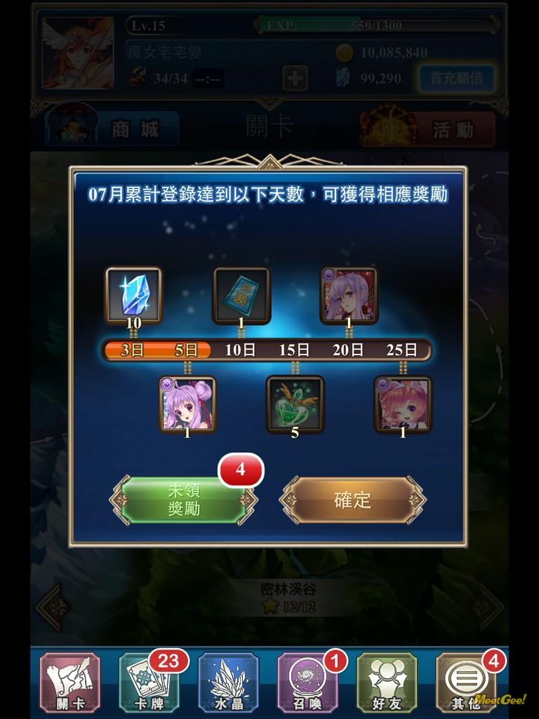 ▲ 每日登入游戏也有机会获得额外的水晶,连续天数不断累积还有机会拿到商城的付费礼包与强力的卡片。