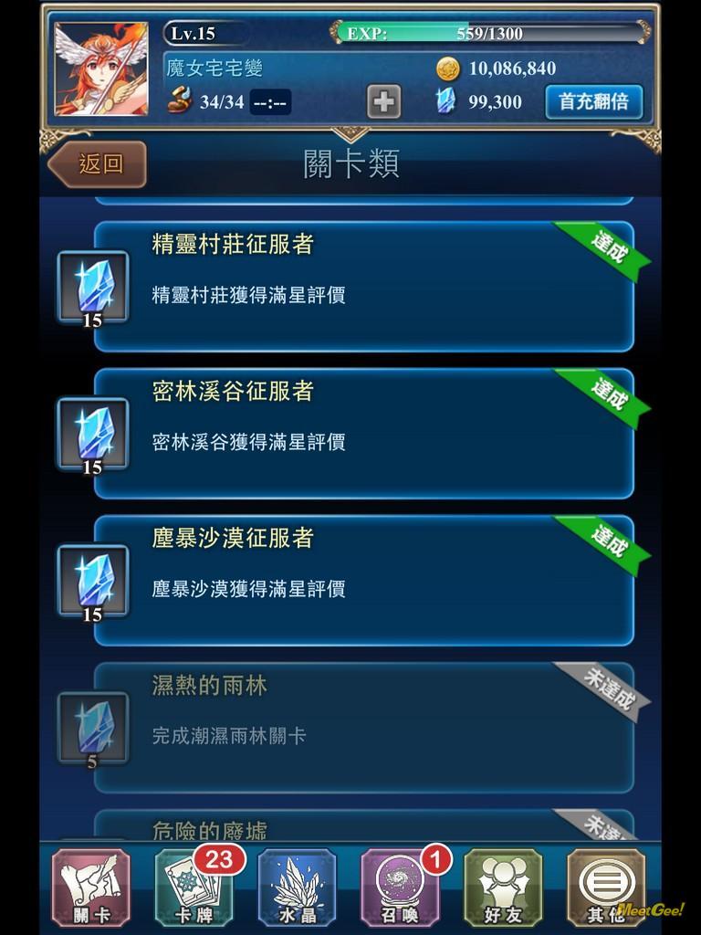 除了前面提到的关卡成就奖励,其他像是在卡牌、社交、战斗与其他类,都有不同的成就目标可以让我们挑战,试着把这些成就的奖励通通拿入手吧!
