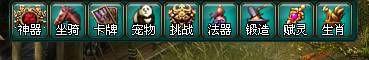 在游戏介面正上方显示的是各个系统的图示,点击一下图示或者按下快速键即可开/ 关相应的介面。