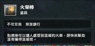 在【住宅街区】附近,找「卖火柴的小女孩温蒂」接取任务,获得任务道具「火柴棒」。( X:549 、Y:325 )