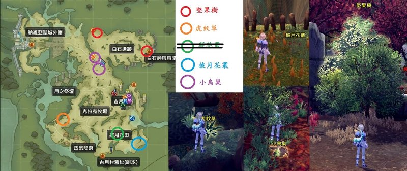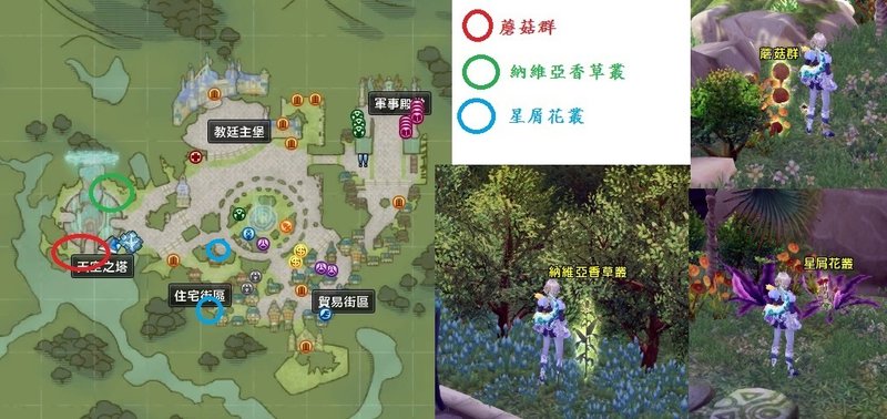 基本上,图中那些材料的点,都是我现采现圈的,通常都会有啦,如果没有的话……可能是被采了不然就是CB换地点了,唷呵呵呵。然后我本来蠢蠢的以为都是绿色而已,所以决定要全做出来。后来做出了橘色品质的,还继续天真的以为只有绿色和橘色而已,那就继续全部做出来吧!