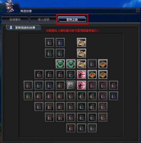 从等级3 开始可以透过冒险之路系统,学习各种能力来打造属于自己的角色,不同的学习路线将会获得不同的效果,在攻击、爆击、闪躲、速度上都可以依照所需配置,可以让人物的走向更专精,可以说是游戏中非常重要的系统。