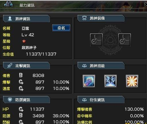 亚当可说是刚开始拿到的四个源神中,比较具备强大攻击能力以及比较有防守能力的源神了。虽然说亚当的攻击没有附加仇恨效果,但好歹也是能够达到帮助玩家火力的效果,也因为技能伤害都是直接伤害(但缺点就是对控场部分毫无帮助了),因此也可说是初期比较容易会OT 的源神了。亚当虽然贫血了点,但无论是防御或闪躲方面的表现都不错。