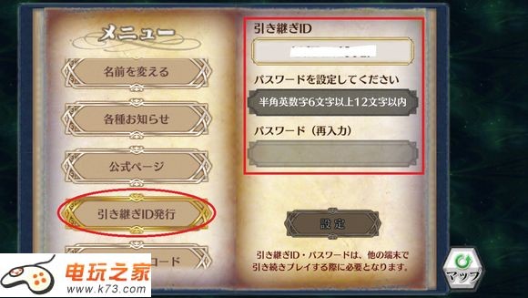 3、在另一台设备上,进入游戏主画面后,选择右下方的“引き続き”,输入第2步获得的ID和密码即可。