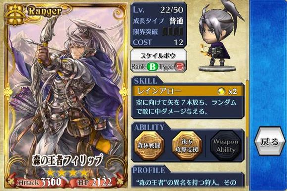 这是我早期最喜欢借用的卡没有之一。天赋没有特别可以写的地方。如果你有把他放后备阵容的cost足够你换五星的了。反正我没。在一城四星里还有如图二的。技能当然比图一要好,从字面上来说。因为多了个down状态。但坑爹的要三个技能点。我拿来当队长的时候借卡的空前少。从性价比来说还是图一会好一点。