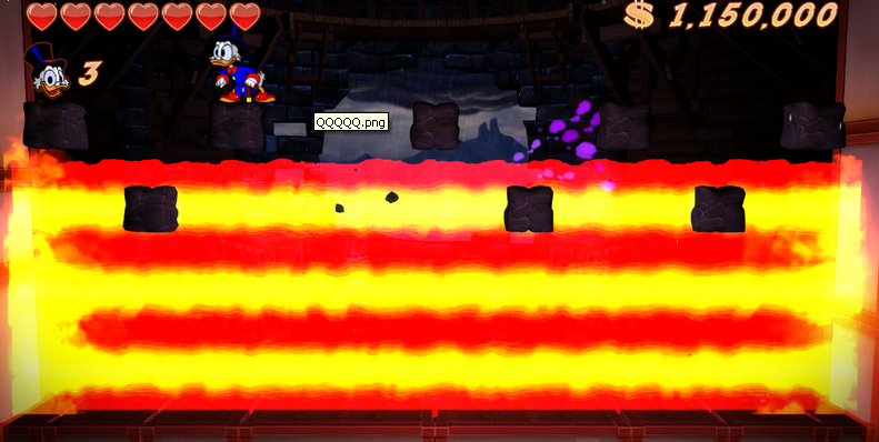 你只要看到那种有点透明的石头 , 就可以穿越过去 , 不是多一颗血爱心 , 就是鸭老太太 给你多一条命的道具。