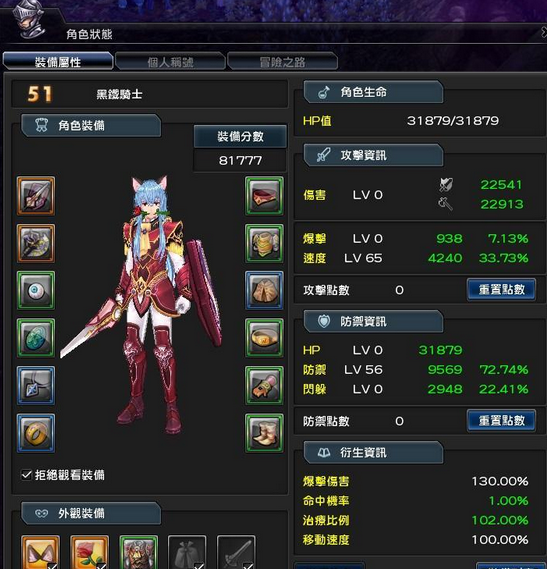 ◆缺点:成型虽快,但血量上跟防御点数点HP 的玩家较少,攻击表现也不如主剑盾副双斧。