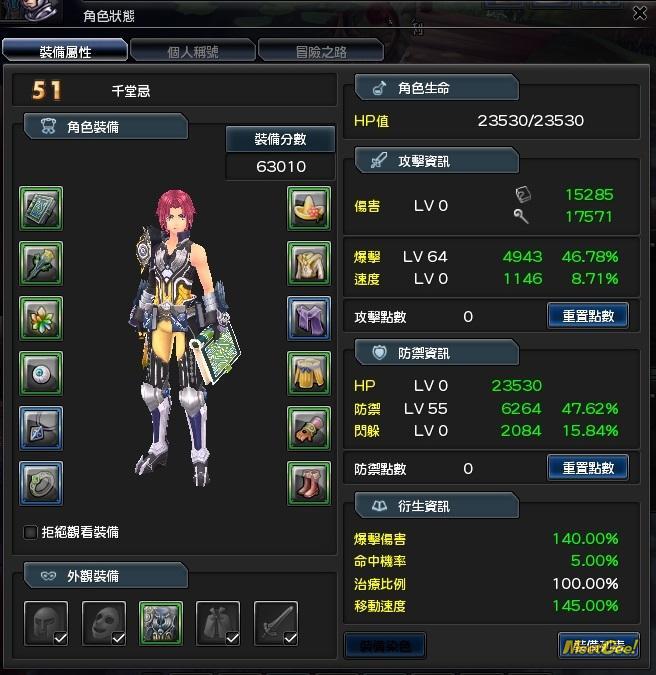 ▲点爆击跟防御持续点到50 级后,爆击跟防御都有一定水准。